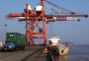 门式起重机是桥式起重机的一种变形,又叫龙门吊。主要用于室外的货场、料场货、散货的装卸作业。门式起重机具有场地利用率高、作业范围大、适应面广、通用性强等特点,在港口货场得到广泛使用。